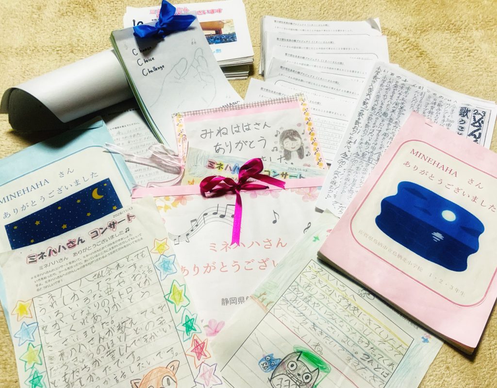 コンサート(45分授業)の後、参加した生徒さん全員から感想文、メッセージをいただきます。