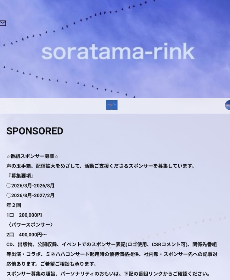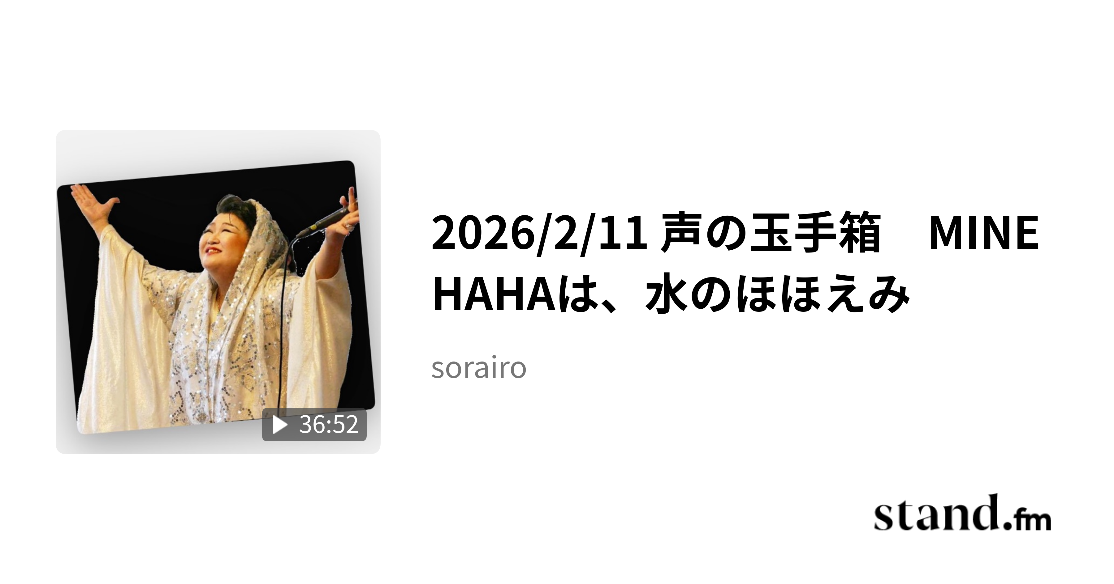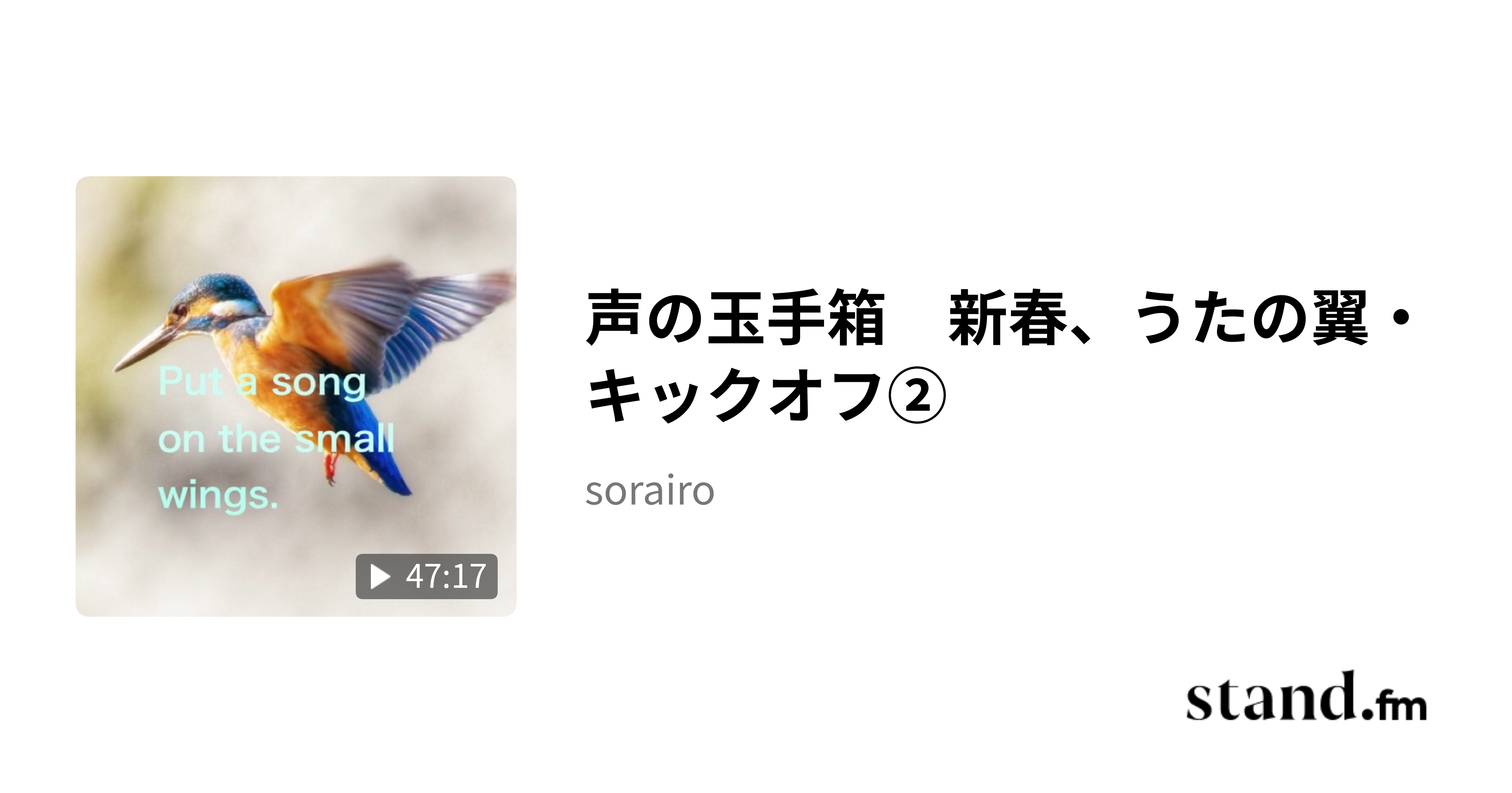 声の玉手箱は、メインパーソナリティ、ミネハハ&パーソナリティ、やまかわそらのコンビで、2024年4月から、月1・2回のペースで配信してまいりました。2026年はじめの放送では、うたの翼プロジェクトへの抱負を熱く語っています。ぜひ、一度お聴きください。