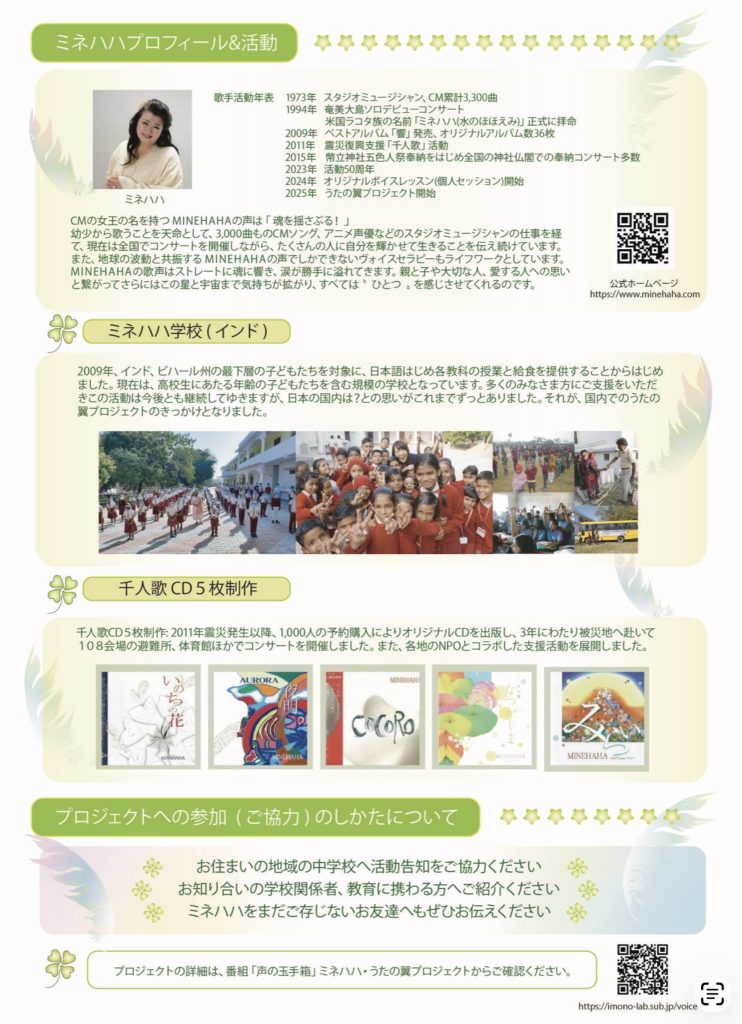 まずは、ひとのつながりから、うたの翼プロジェクトのWebやミネハハのホームページを
